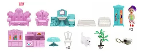 Casa de muñecas tipo castillo de 1 habitación con accesorios (pequeña)