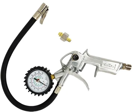 Medidor de presión de neumáticos e inflador. Mantén tus neumáticos en óptimas condiciones con el medidor de presión de neumáticos. Este práctico y preciso dispositivo es la herramienta ideal para garantizar que la presión de tus neumáticos esté siempre en los niveles recomendados, lo que contribuye a una conducción más segura, eficiente y económica. Con su diseño ergonómico y fácil de usar, es perfecto tanto para profesionales como para conductores que desean cuidar su vehículo en casa. El medidor de presión de neumáticos es una herramienta esencial para garantizar la seguridad en la carretera, mejorar la eficiencia y extender la vida útil de tus neumáticos. Mantén la presión correcta y evita el desgaste prematuro de los neumáticos con esta herramienta confiable y precisa. ¡Un pequeño accesorio que hace una gran diferencia!