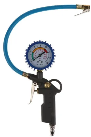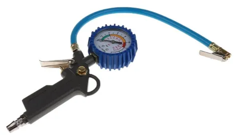 Inflador de neumáticos con medidor de presión.
