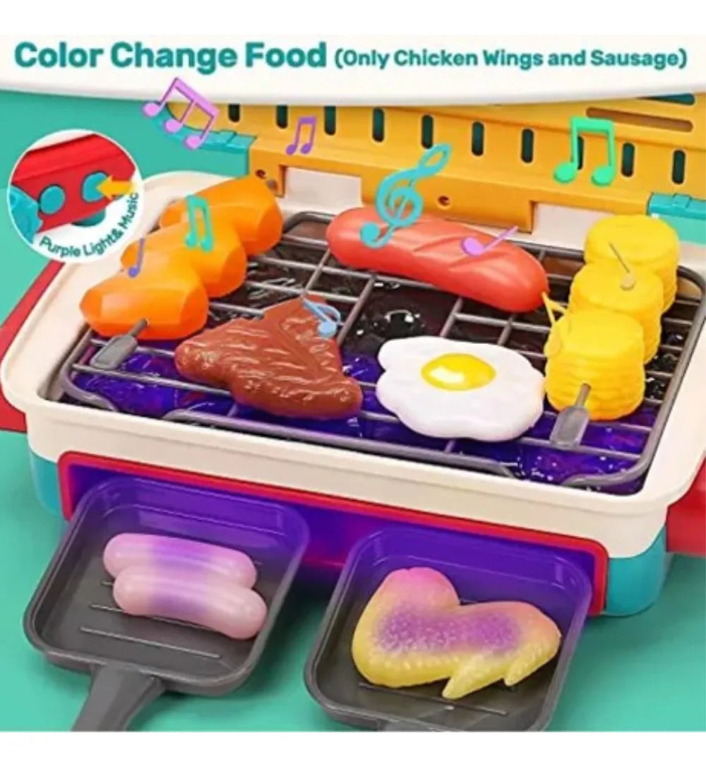 Los niños pueden hacer juegos de rol de chef con amigos o familiares, pueden usar clips para organizar la comida cuidadosamente en la parrilla, luego espolvorear un poco de condimento sobre la comida, ¡los efectos realistas proporcionan una experiencia de juego de parrilla inmersiva para los niños!